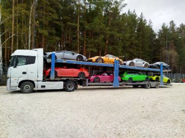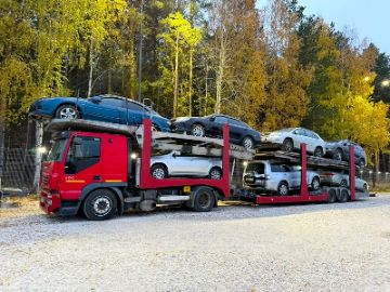 Доставка на автовозе. Вместительность автовоза 4-8 автомобилей.